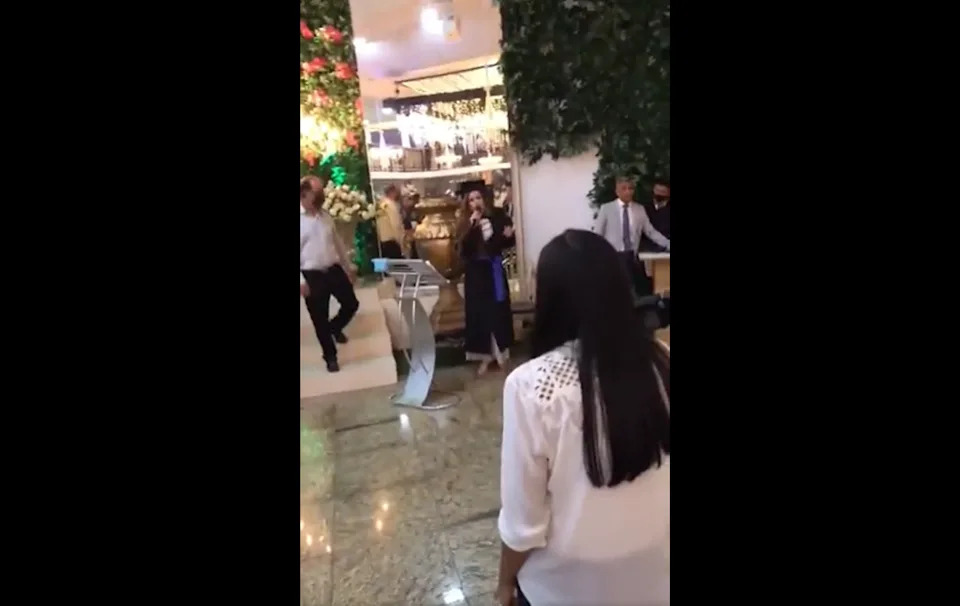 “Era para ser só uma formatura, mas começaram a ‘babar ovo’ do diretor e eu não aguentei. Primeiro, me recusei a tirar foto com ele. E resolvi falar, para todo mundo saber o que esse ‘ótimo diretor faz’”, ela escreveu na legenda do vídeo.