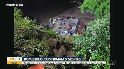 Um ônibus caiu em um córrego na BR-153 e deixou cinco mortes e dezenas de feridos na madrugada desta sexta-feira (24), em Aparecida de Goiânia, Região Metropolitana da capital. O acidente aconteceu no desvio próximo à cratera que se abriu na rodovia. Todos os sobreviventes já foram resgatados.