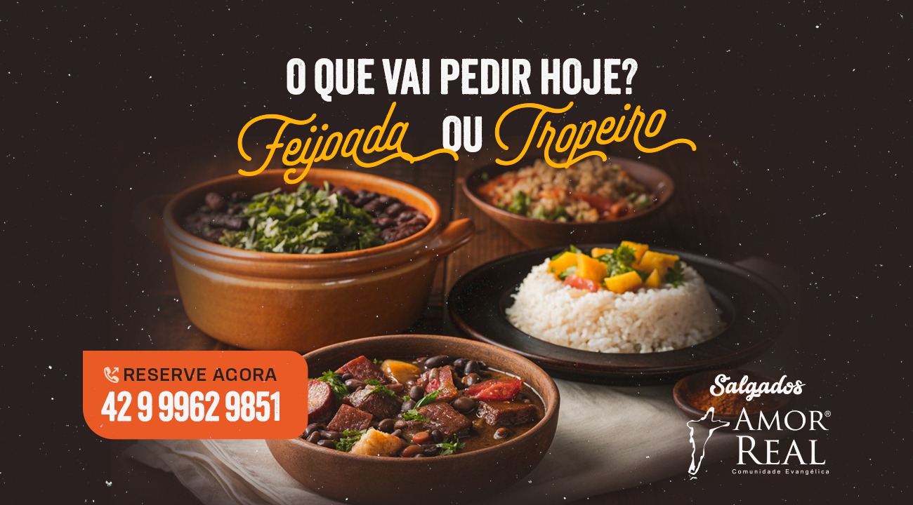 Feijoada ou feijão tropeiro: qual vai ser o seu almoço hoje? Duas opções clássicas, bem servidas e prontas para salvar o dia, com porções generosas para até 4 pessoas, acompanhadas de arroz, farofa, couve e vinagrete para deixar a refeição completa. A feijoada chega com aquele sabor tradicional que conquista no primeiro garfo; o feijão tropeiro entrega textura, tempero e sustância na medida certa. Chama no delivery, pede e decide na hora: (42) 9 9962-9851 ou pelo iFood.