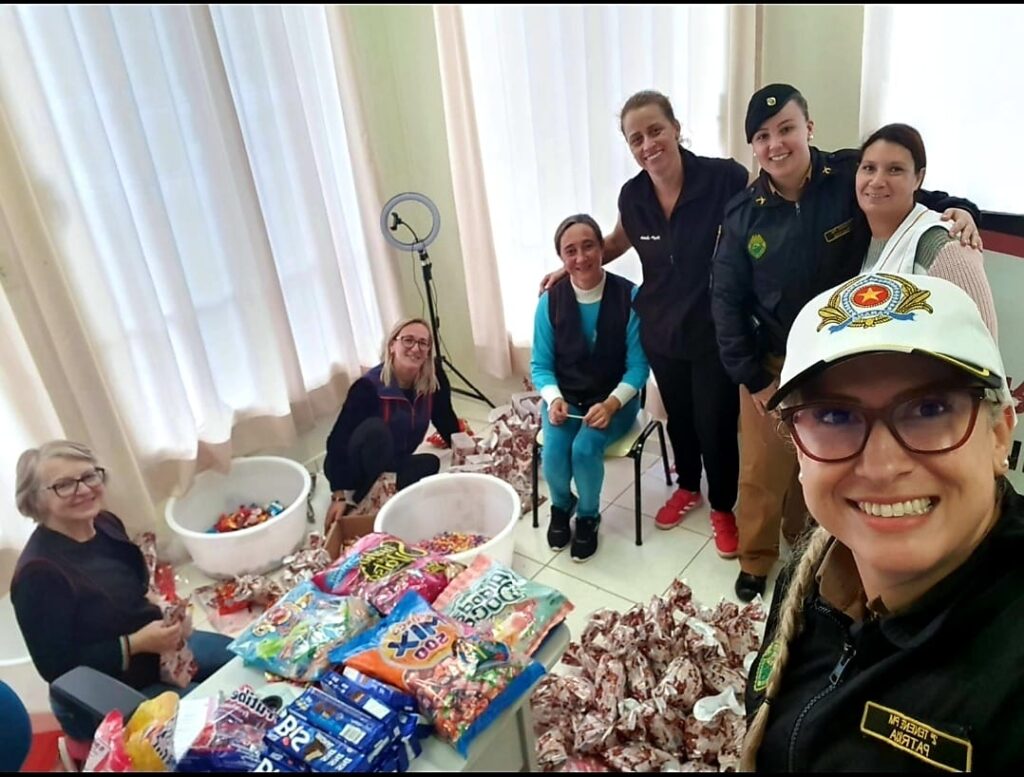 Graças a grande quantidade de doações recebidas pudemos desta vez ajudar as Escolas Silvanira, Guará, Maria de Jesus, além do CMEI Morro Alto e do Instituto Dom Bosco. Também no domingo de Páscoa, as equipes policiais levarão chocolates aos locais mais periféricos de nossa cidade.