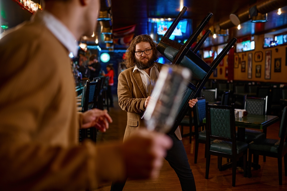 A segunda vítima, homem de quarenta e um anos, tentou imobilizar o primeiro agressor para evitar continuação da agressão. Sua ação resultou em golpe desferido pelo segundo agressor utilizando taco de sinuca. O segundo agressor golpeou a segunda vítima com o taco após o primeiro agressor ter agredido o proprietário. As duas vítimas receberam atendimento médico do SAMU no local do incidente. A documentação das lesões foi realizada pela equipe de resgate para fins de registro médico agora.