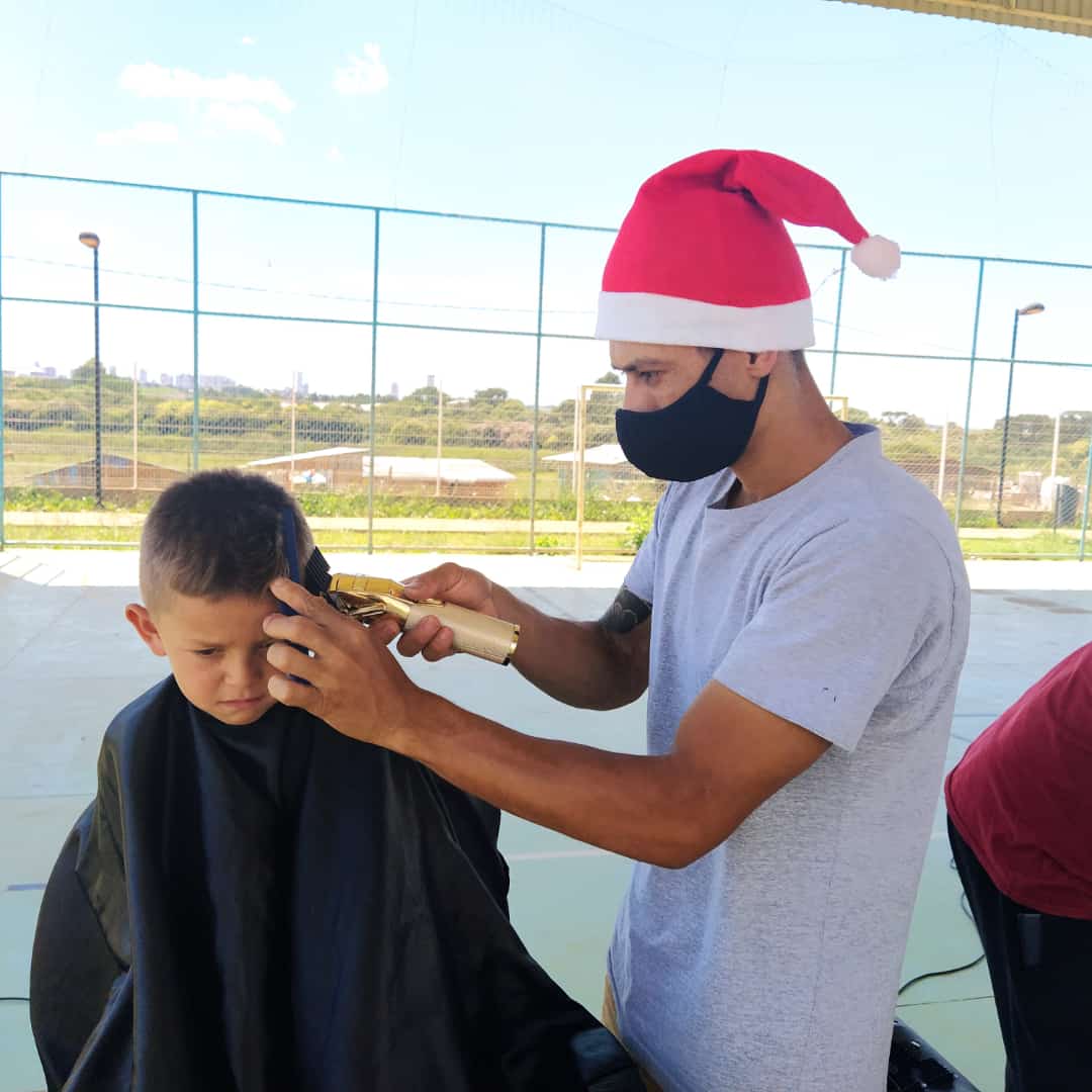 Crianças que participam dos projetos do CEU das Artes, no Jardim das Américas, receberam uma visita especial neste último sábado (11). Um grupo de barbeiros de Guarapuava reservou o dia para mudar o visual da garotada como um gesto concreto de solidariedade e espírito natalino. “A ideia foi do Thiago. Nós temos um grupo de amigos e nos mobilizamos por whatsapp. Foi maravilhoso, teve hora que cheguei a me emocionar. É gratificante você ver o sorriso no rosto das crianças”, declarou o cabeleireiro e empresário Edivaldo Rocha.