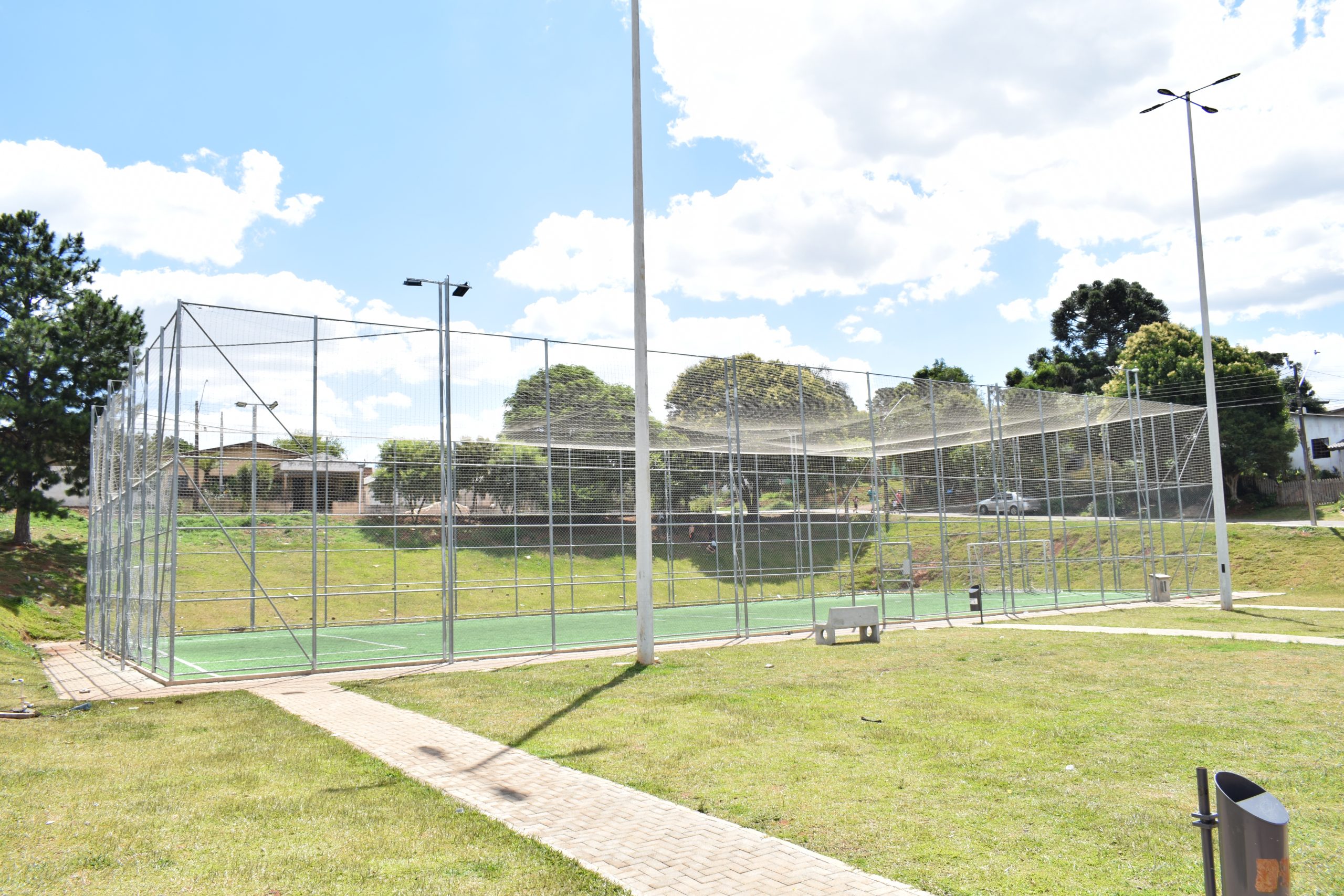 A Secretaria Municipal de Esportes e Recreação de Guarapuava realiza nos próximos dias a inauguração de sintéticos e playgrounds em bairros e distritos da cidade. Dentro do Programa Meu Campinho, oferecido pelo Governo do Estado com o intuito de promover a prática esportiva e de lazer das pessoas, serão entregues três Campos de Society com grama sintética e dimensão de 18m x 36m, totalizando 648m², no Bairro Xarquinho, Vila Jordão e Colibri.