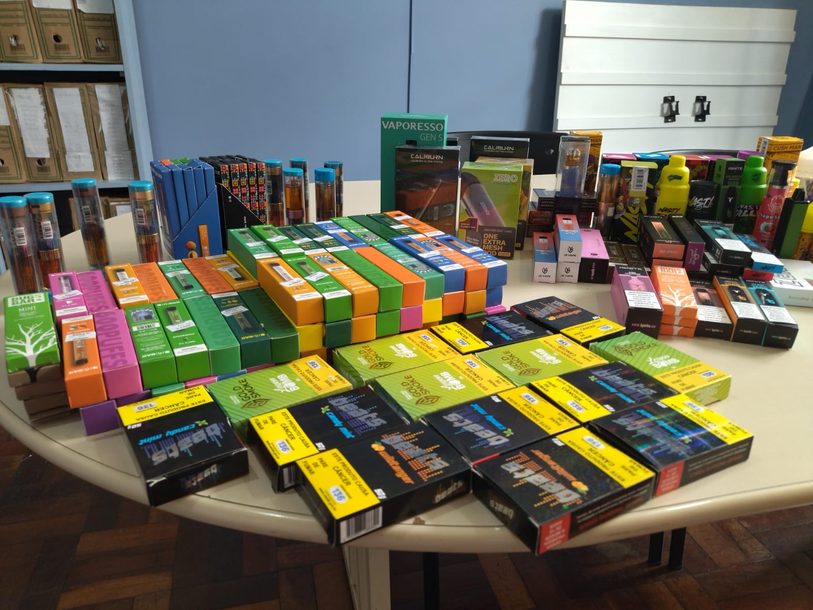 Além dos cigarros eletrônicos, também foram apreendidos 37 essências, 55 fumos para narguilé e 150 tabletes de fumo para narguilé, ambos sem validade. O valor estimado das mercadorias apreendidas é estimado em R$ 16.500,00 (dezesseis mil e quinhentos reais).