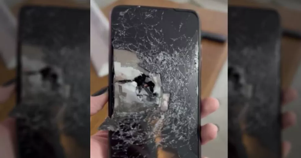 Imagens do aparelho atingido pelo disparo foram compartilhadas nas redes sociais por Anne Wendler, filha do cabo Wendler, único PM que estava na viatura e que não ficou ferido durante a ação dos criminosos.