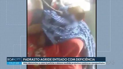 Um vídeo mostra o momento em que um homem agride o enteado autista e com deficiência mental, em Guarapuava, na região central do Paraná.