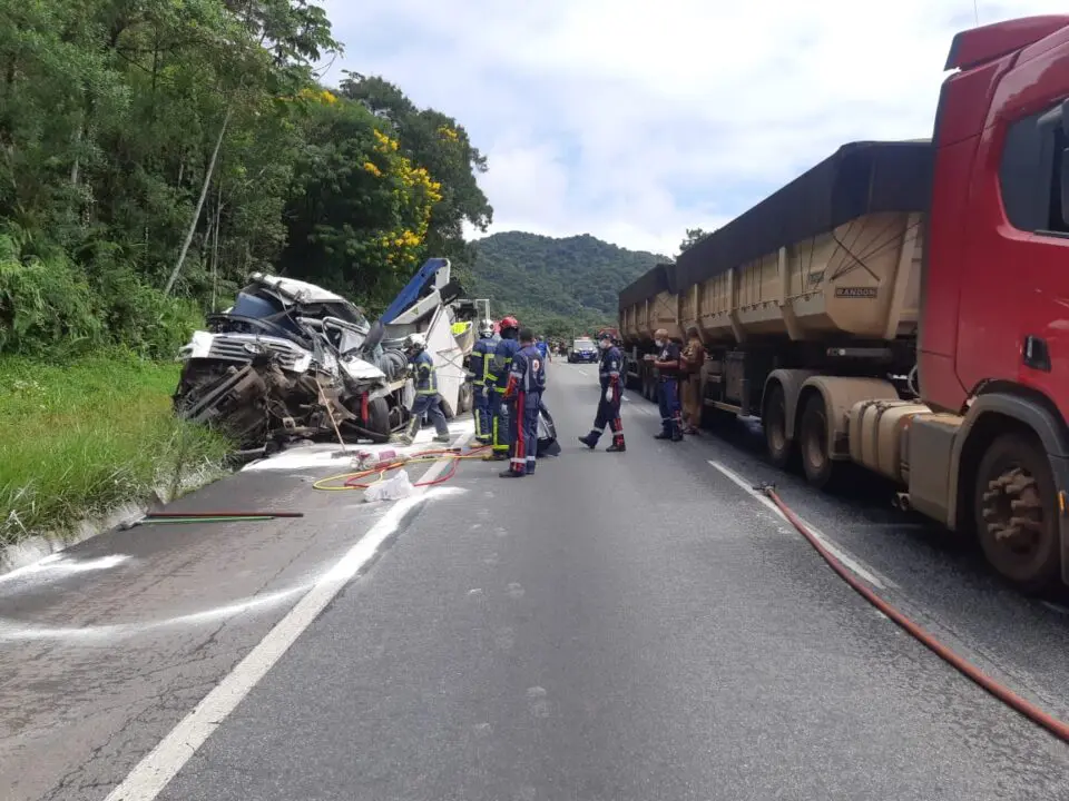 Equipes da PRF fazem, neste momento, atendimento. A região em que aconteceu o acidente é de serra e os dois sentidos da rodovia estão interditados.
