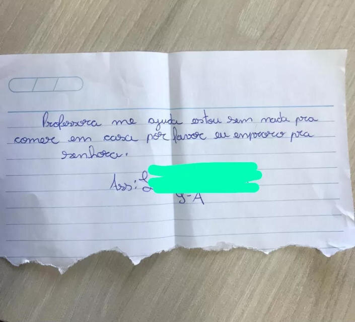 • Um aluno de Paranavaí (PR) escreveu um bilhete para uma professora implorando por comida