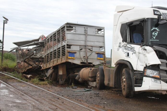 Na madrugada desta sexta-feira (25), por volta das 5 horas, a equipe do Corpo de Bombeiros, de Apucarana, foi acionada para atender uma colisão entre uma carreta carregada com porcos, que foi atingida pelo trem em Cambira.