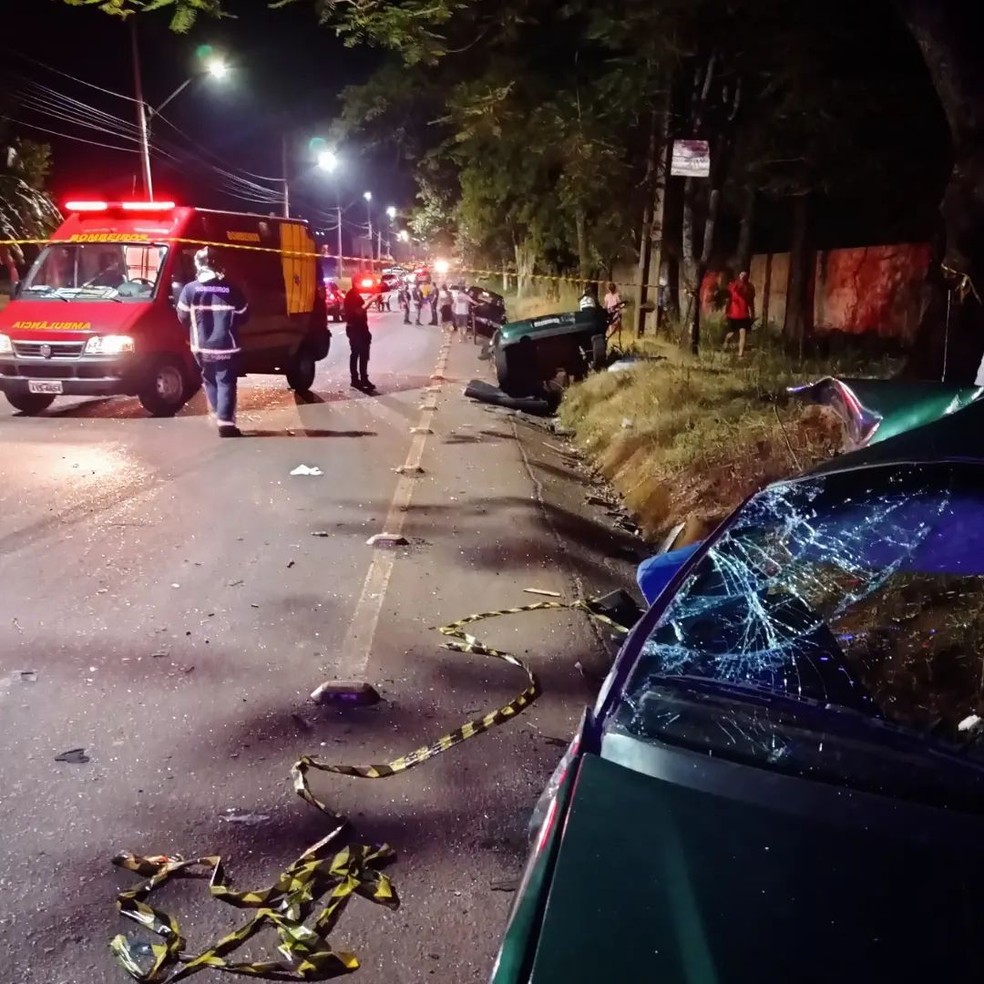 Veículos ficaram destruídos após acidente registrado na noite de domingo (26) — Foto: Bombeiros