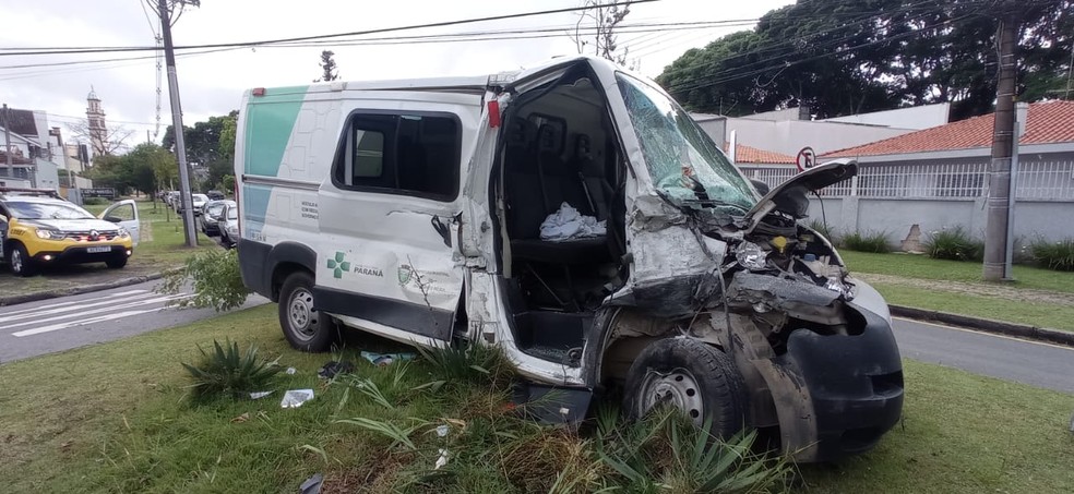 Cinco pessoas ficaram feridas em uma batida entre uma ambulância e um ônibus do transporte coletivo de Curitiba, na manhã desta sexta-feira (24). Segundo a Polícia Militar (PM), o acidente aconteceu por volta das 7h45, no bairro Mercês.