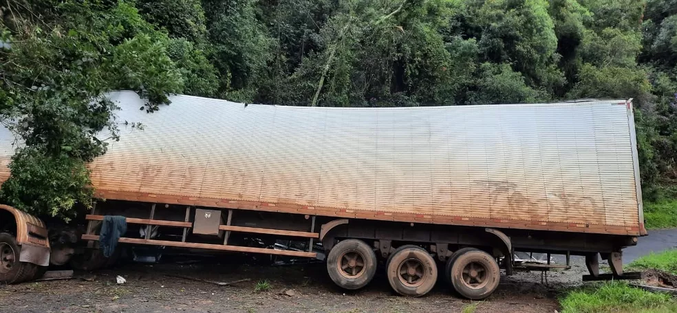 Segundo a polícia, a carreta estava com semi-reboque que ficou retorcido — Foto: Divulgação/PRE