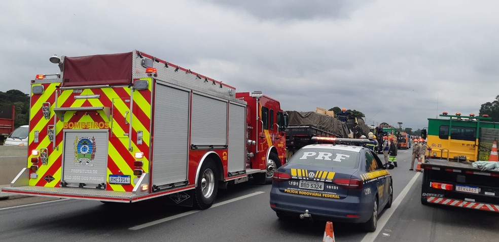 Pelo menos duas pessoas morreram em um engavetamento envolvendo quatro caminhões na BR-116, região do Contorno-Leste, em São José dos Pinhais, segundo informações da Polícia Rodoviária Federal (PRF). O acidente na região metropolitana foi registrado no início da tarde desta quinta-feira (13).