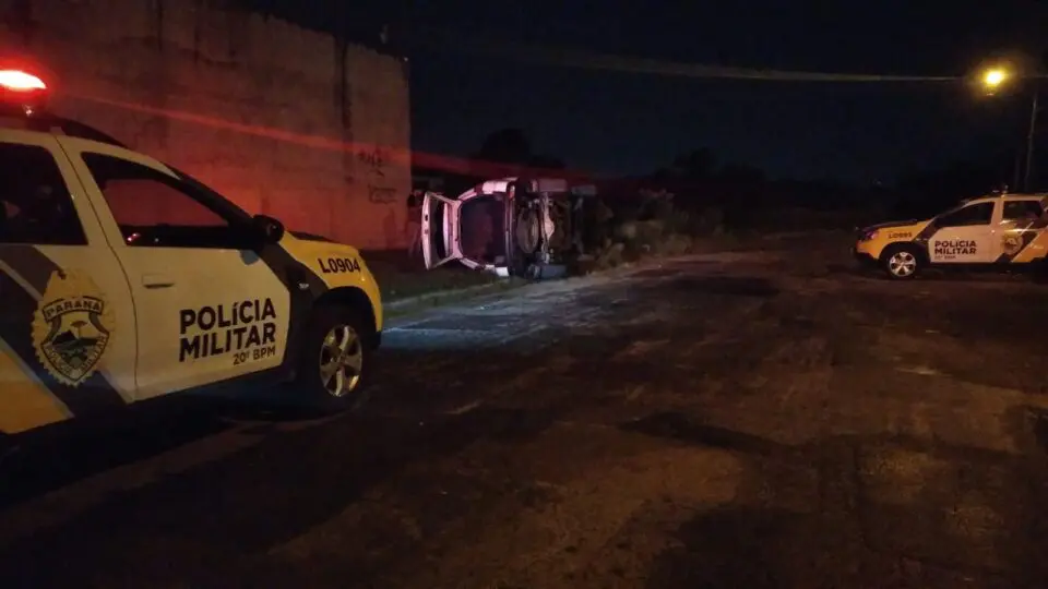 Uma câmera de segurança registrou o momento em que uma viatura policial descaracterizada capotou durante uma perseguição, na tarde desta quinta-feira (10), no bairro Boqueirão, em Curitiba. Policiais estariam perseguindo ocupantes de um veículo.