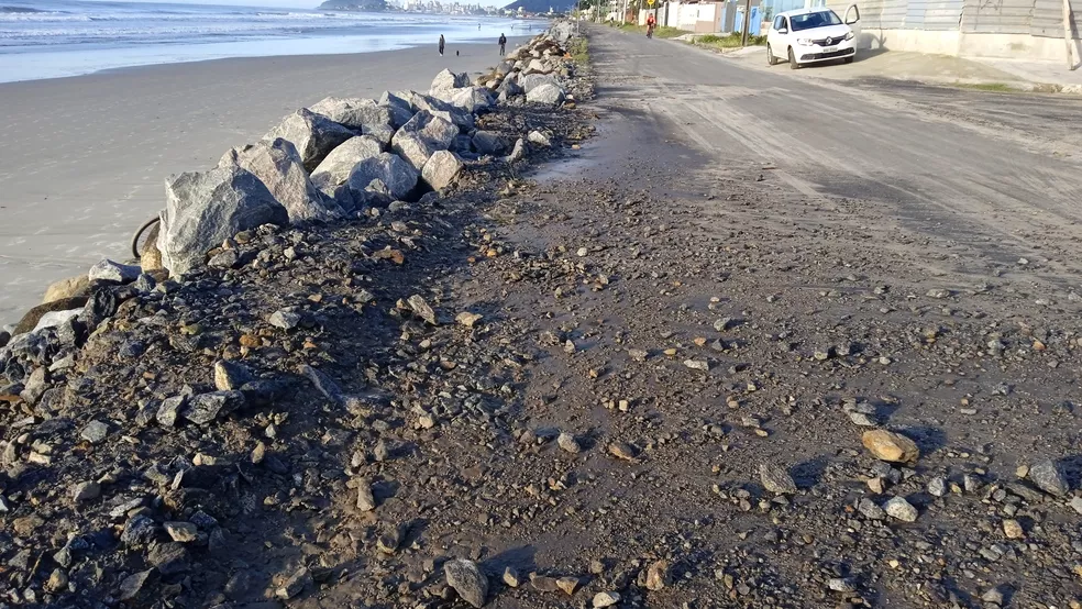 A prefeitura informou que as pedras que foram parar na avenida chegaram até a região do balneário Riviera.