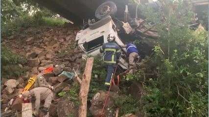 Três pessoas morrem após caminhão cair da ponte e capotar em Marquinho