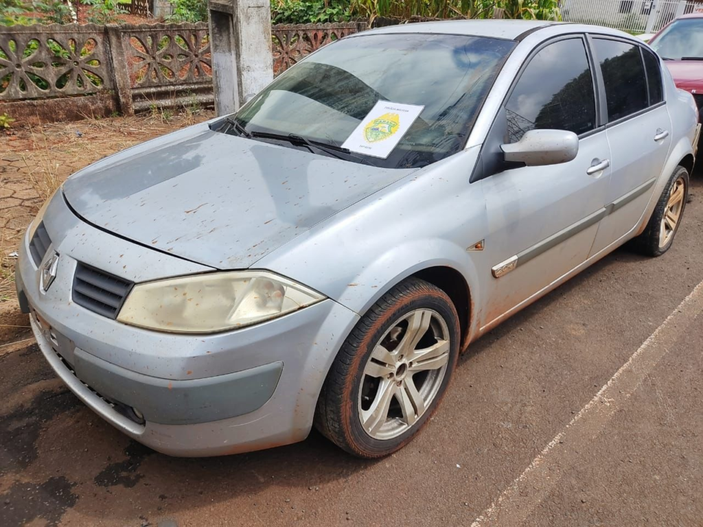 Realizada consulta via sistema operacional, através do numero do chassi foi verificado que se tratava do veículo Renault Megane, placas AOT-3505 e que possuía alerta de furto.